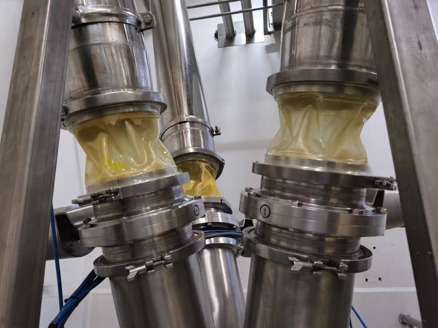 食品級快裝軟連接產品特點?� 采用基于標準管道設計,通過接頭和特別設計的卡箍實現完美密封。采用食品級TPU薄膜精密焊接而成,做工精細平滑、密封嚴密無泄漏、耐磨抗撕裂、透明以便觀察,另外具有安裝方便、尺寸標準化、方便備件和維護等優勢。透明、便于觀察物料流動情況;極度耐磨、抗撕裂、耐油、壽命為普通橡膠的10 倍以上;可以任意直徑尺寸,無最小起訂量要求;符合食品衛生要求?�